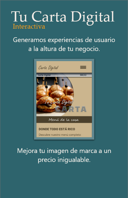 Una experiencia única para tu restaurante. A diferencia de las webs tradicionales, no requiere desarrollo ni hosting. Por solo 170€, (precio de mercado 1,200€) obtienes un diseño interactivo personalizado.